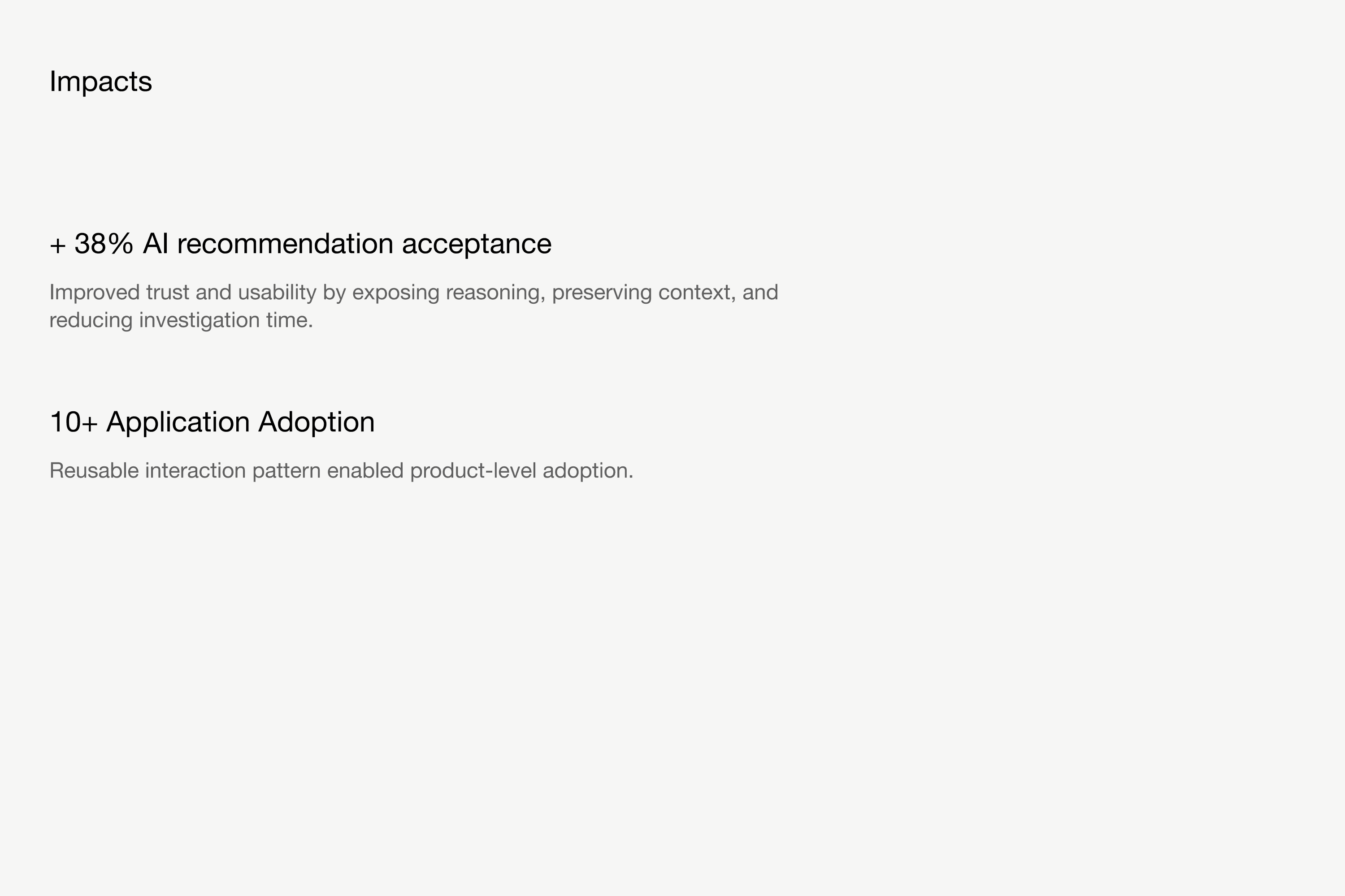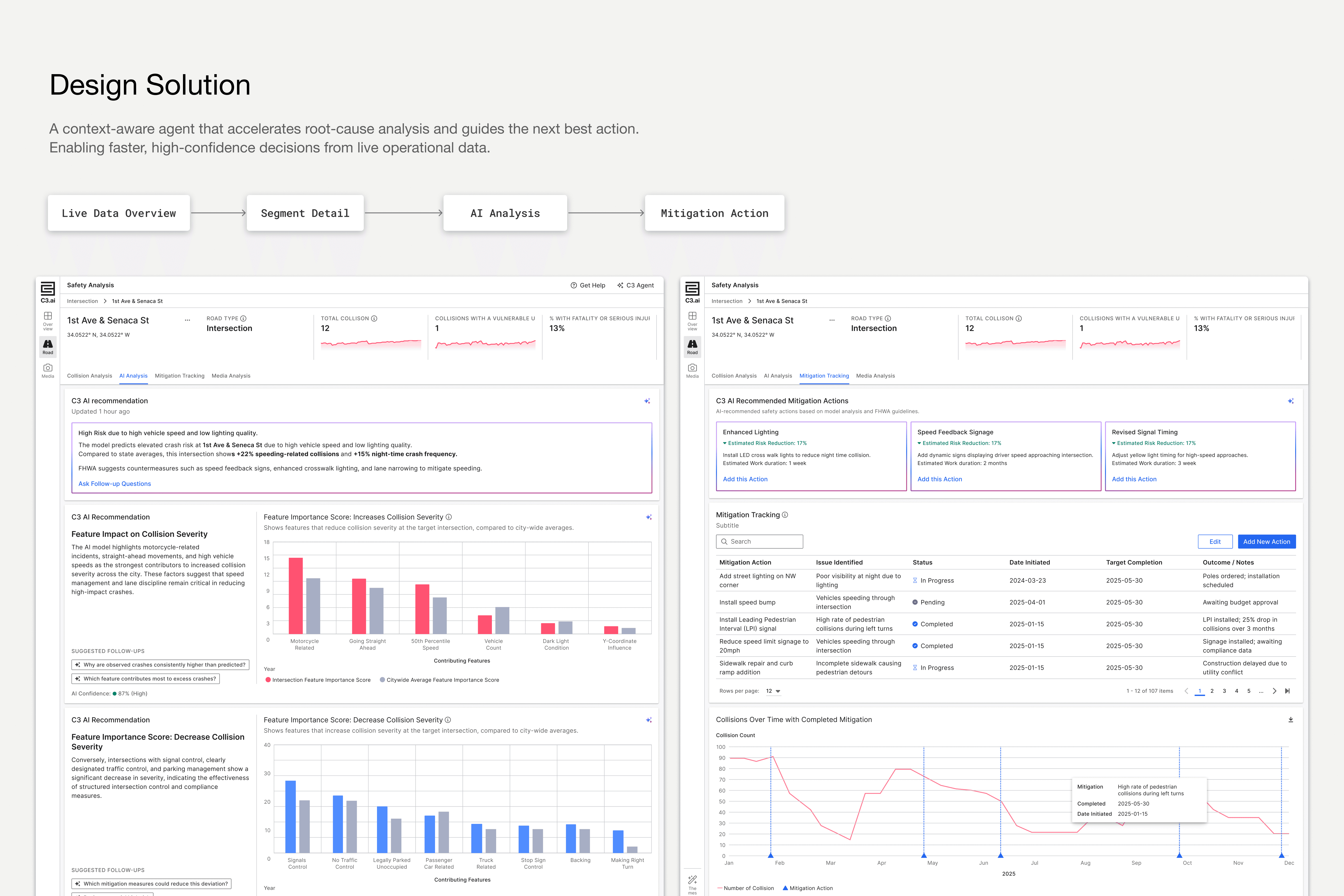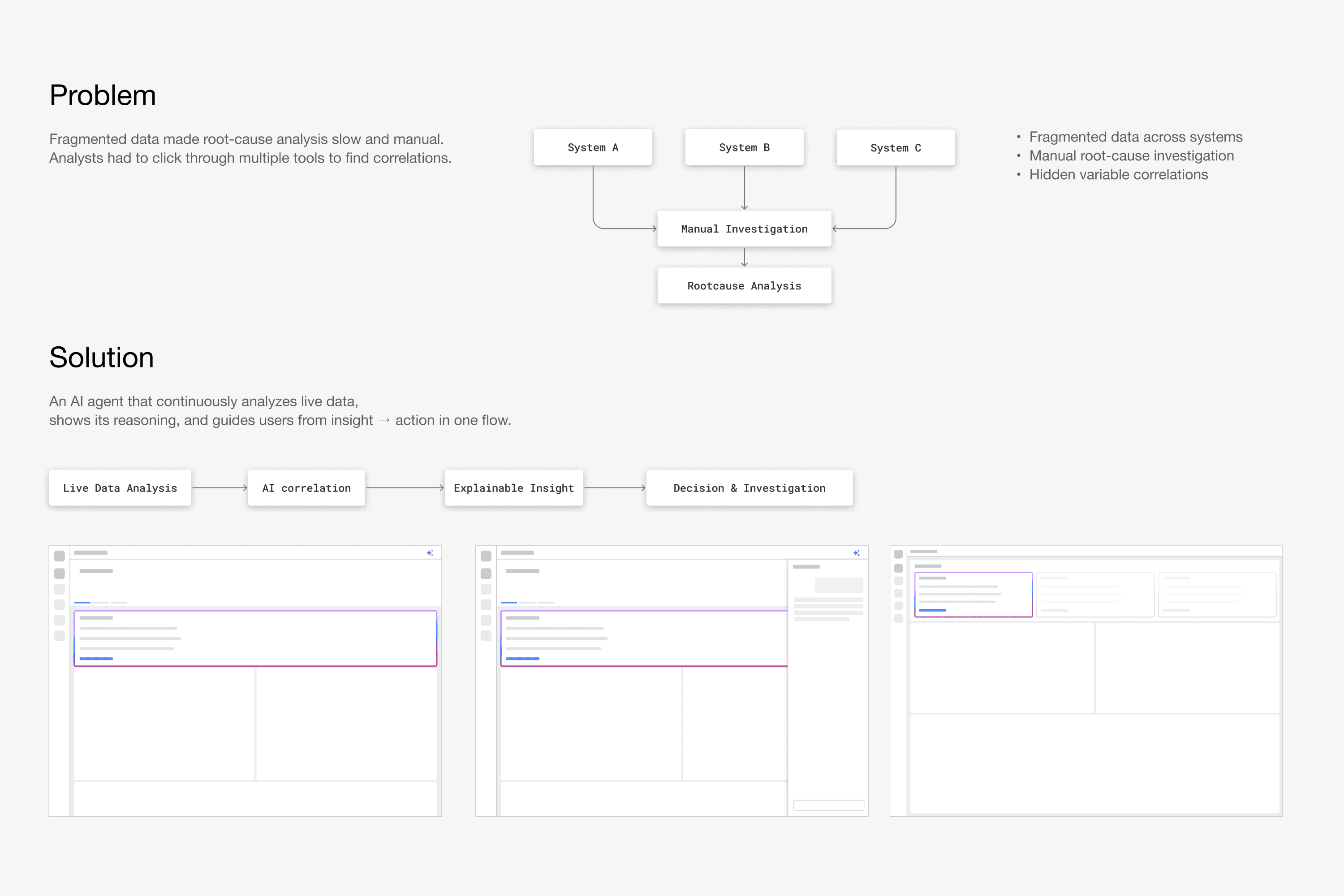 Owned and defined the agent interaction model for an explainable AI system that transforms fragmented safety data into a real-time decision workflow: helping analysts uncover correlations, investigate root causes, and act with speed and confidence.