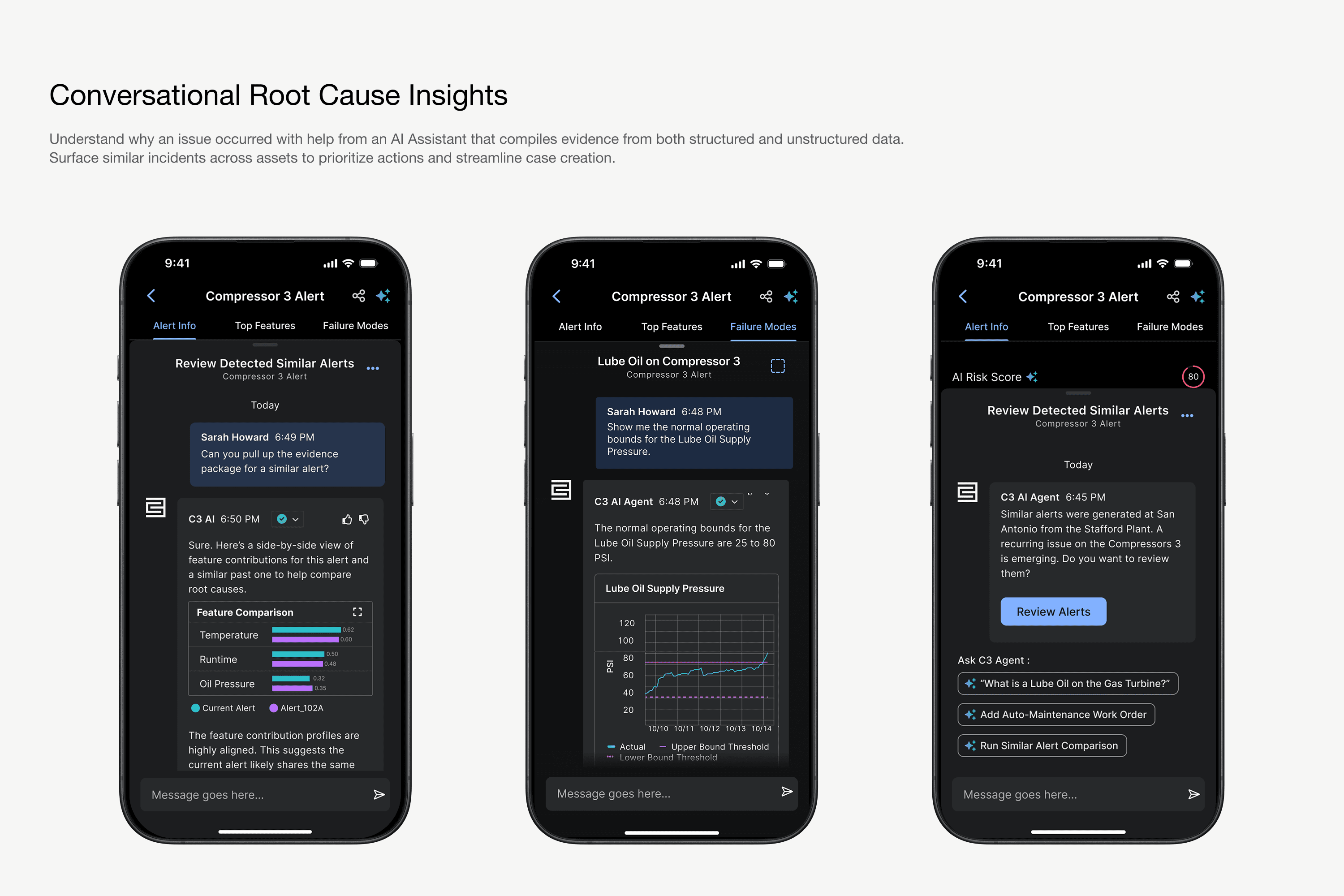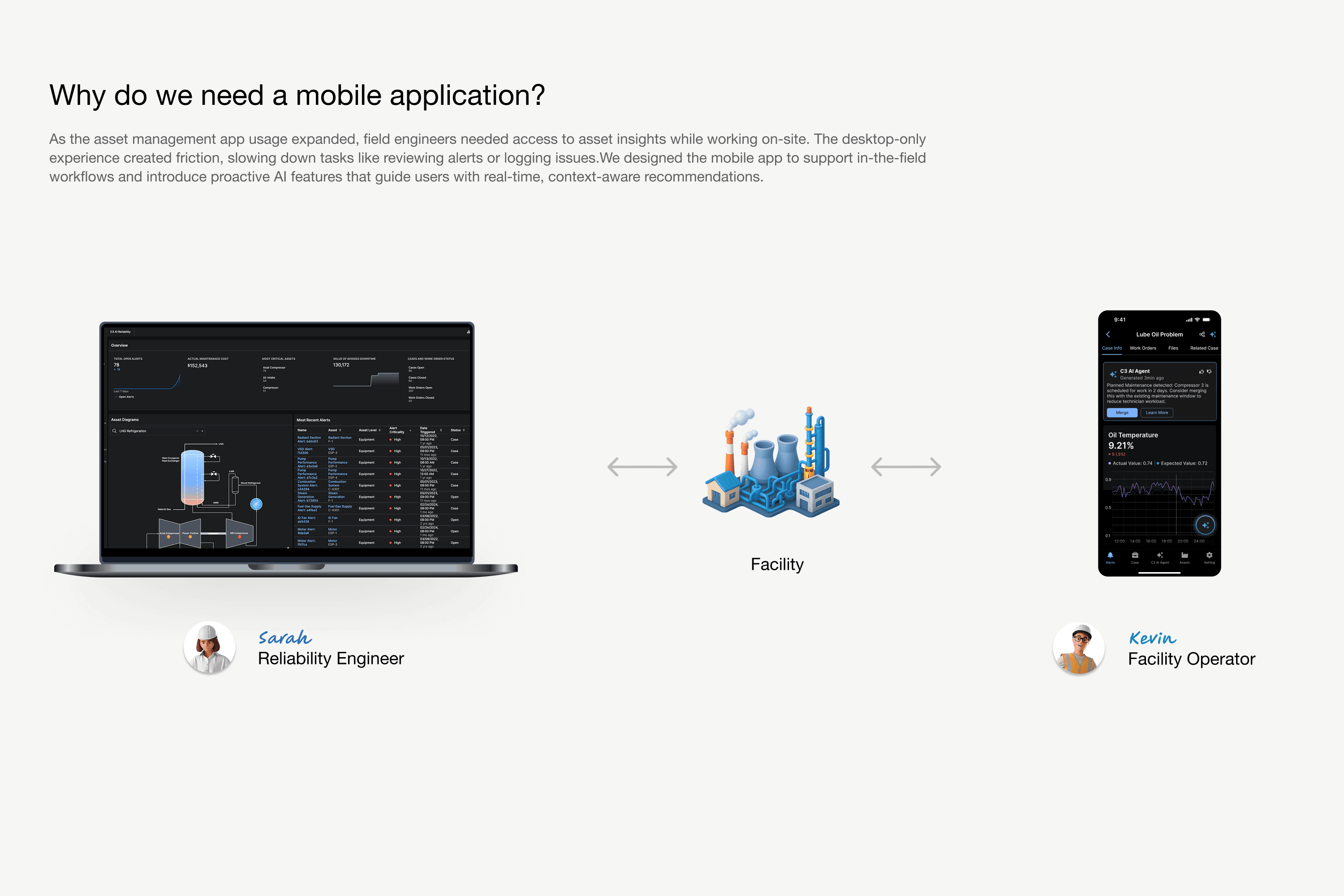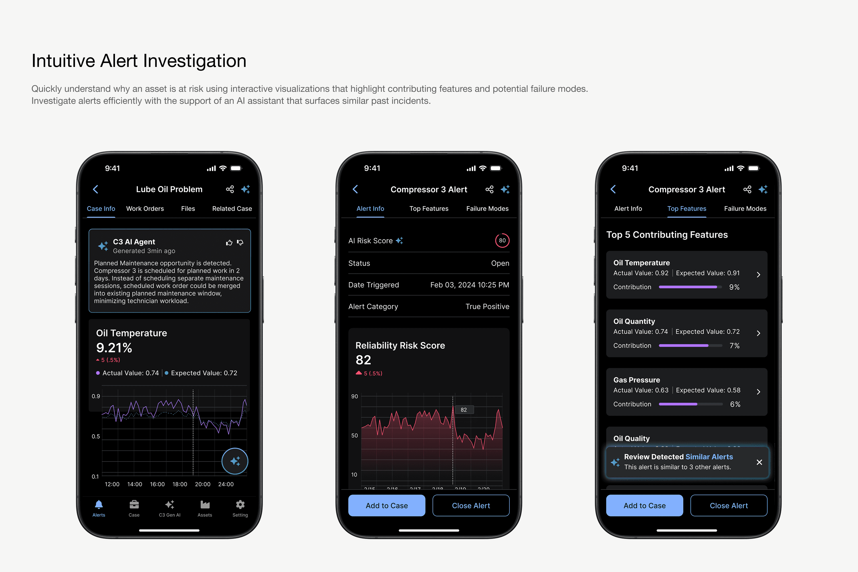 To support C3 AI’s expanding asset management platform, we developed a mobile version enhanced with an intuitive AI assistant. The project was driven by the needs of a new user persona and involved end-to-end design tailored specifically for mobile. The app was showcased at the 2024 Transformed Product Advisory Council and received highly positive feedback from customers.